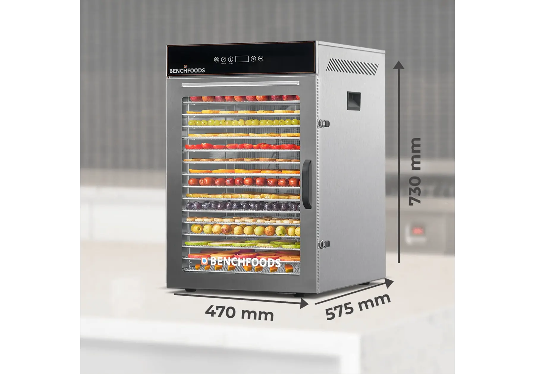 • 2.56m² of total tray area to dehydrate at commercial rates.